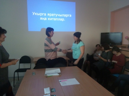3 октября работники центральной библиотеки провели акцию по выдаче читательских билетов работникам детских садов № 4 « Петушок», № 2 «Ромашка», № 7 «Алтынчэч», «Умырзая». Всего в этот день выдано 55 единых читательских билетов. В мероприятии была организована книжная выставка под названием «Китап яратучыларга яңа китаплар”. Был показан буктрейлер по книге К.Жамита “Килмешәк”. Директор АМЦБ Шамсунова Ландыш Явдатовна вручила читательские билеты. Участники акции записаны , как новые читатели библиотеки и взяли на дом понравившиеся книги.