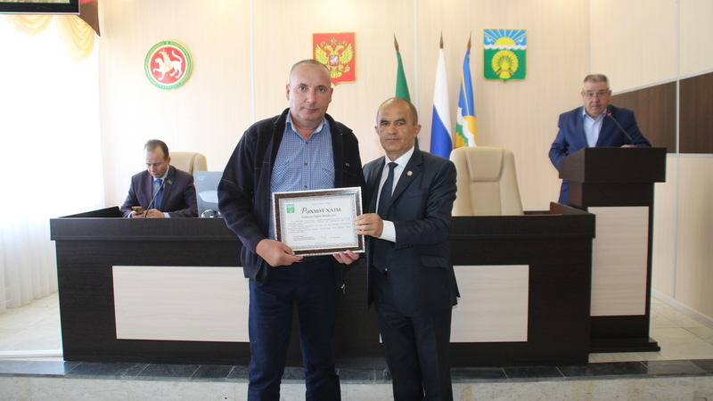 Руководителей хозяйств Айрата Салихзянова, Рафика Сахабетдинова, Ильяса Мирзаянова, Ирека Галимова глава района Энгель Фаттахов в честь окончания уборки наградил Благодарственными письмами.