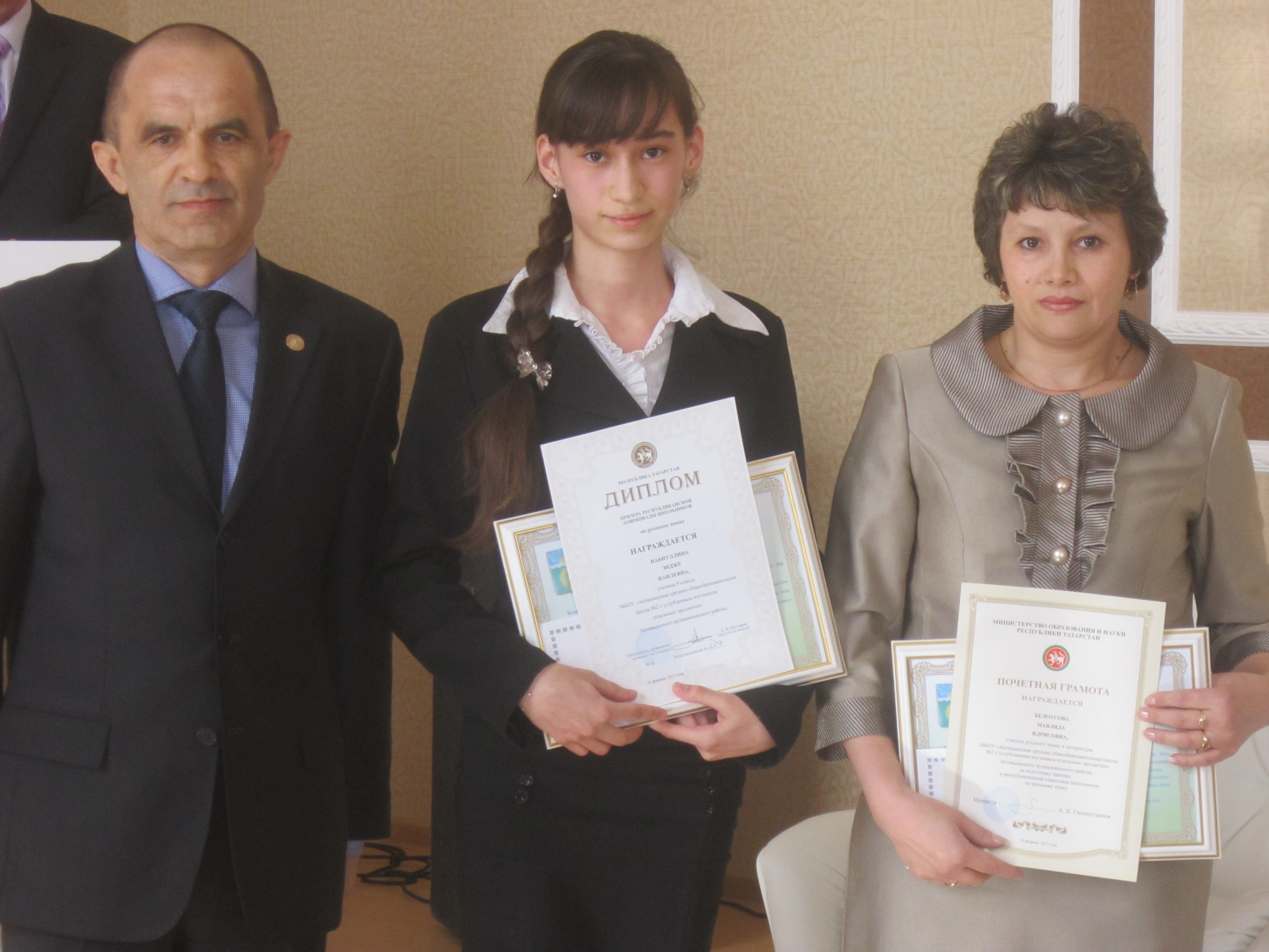 Алар арасыннан өч укучы татар теле һәм әдәбияты фәннәре буенча республикада абсолют җиңүчеләр булып табылдылар. Алар: