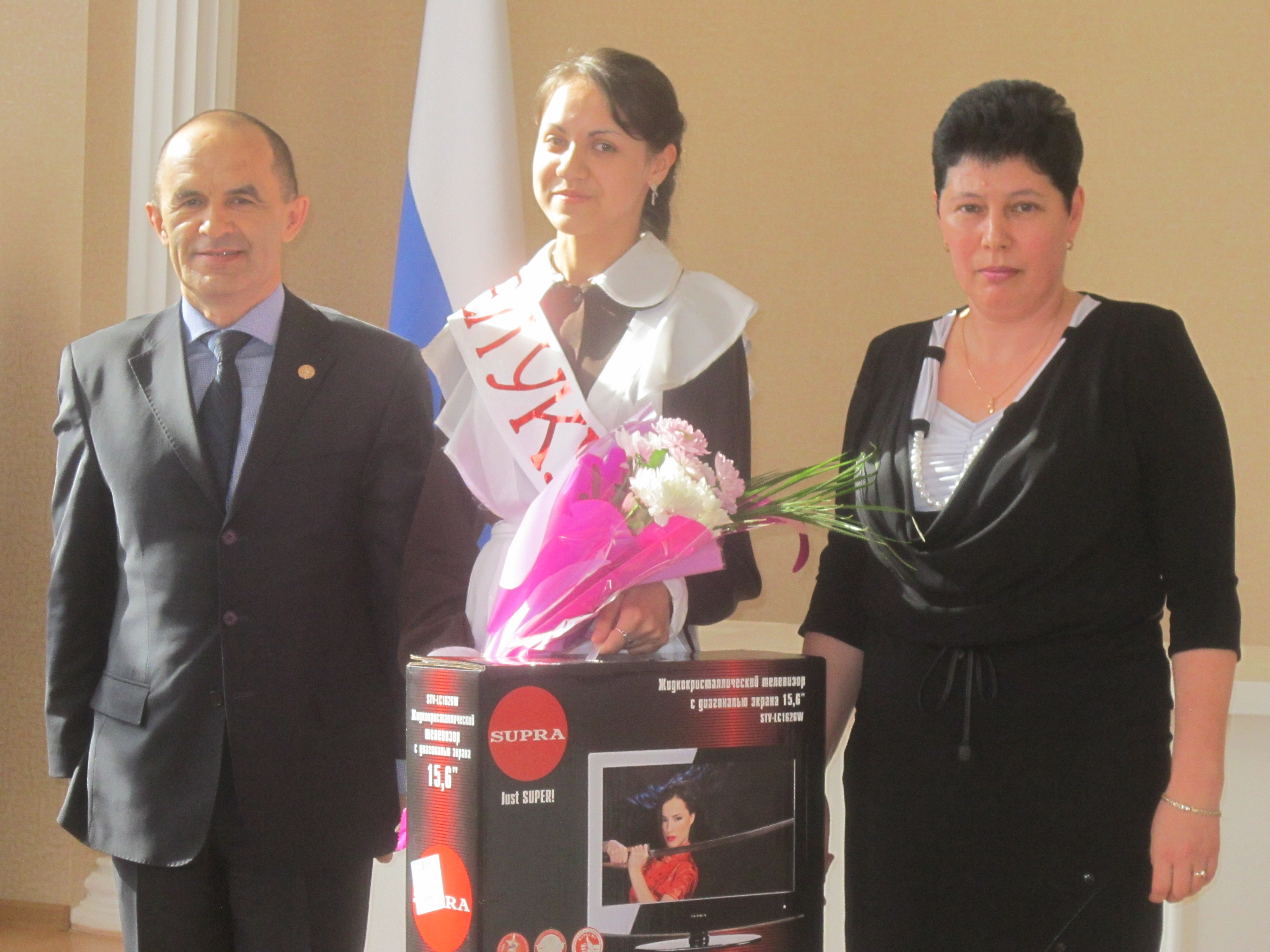 Ниһаять, бәйрәмнең иң тантаналы мизгелләре – Ел Укучысын игълан итәләр. Ул – Актанышның 1 нче санлы мәктәбенең 11 сыйныф укучысы, күпсанлы фәнни бәйгеләр, конференцияләрдә җиңү яулаган, быел Россия Президентының премиясе лауреаты булган уку алдынгысы – Гүзәл Фарсиева. Район башлыгы Энгель Фәттахов аны котлап, язулы тасма кигерде, киләчәктә дә җиңүләр теләп, кыйммәтле бүләк тапшырды.