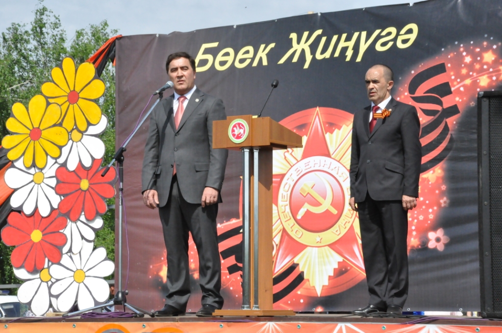 Ветеранов войны, тружеников тыла, жителей и гостей района поздравил с 67-й годовщиной Победы в Великой Отечественной войне глава муниципального района Энгель Фаттахов. В праздничном мероприятии приняли участие заместитель Премьер-министра Республики Татарстан - министр энергетики Республики Татарстан Ильшат Фардиев, управляющая делами Министерства культуры РТ Кадрия Идрисова.