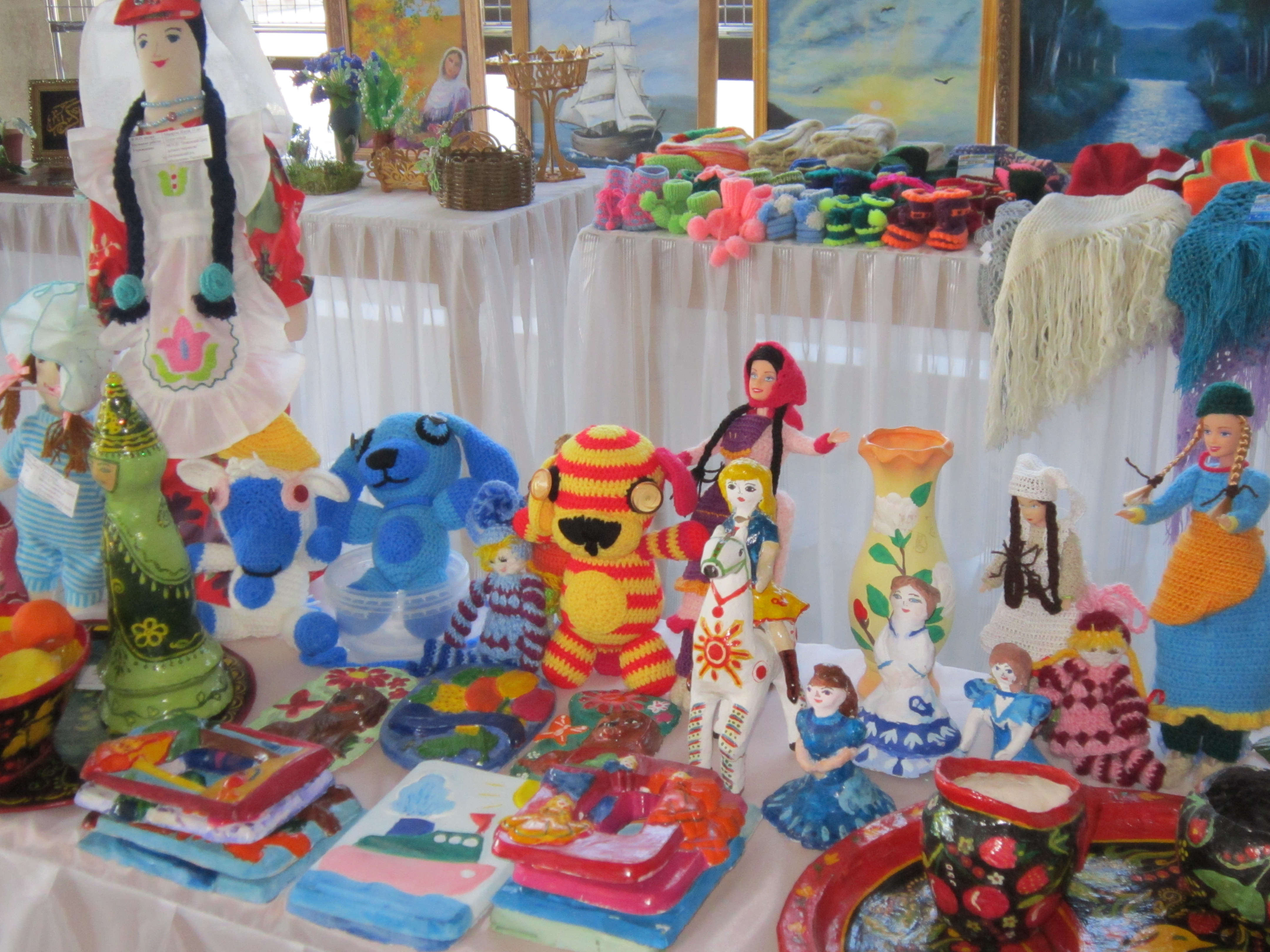 Бәйрәм театр бусагасыннан ук башланды: фойеда районыбыз оешма-предприятиеләрендә җитештерелгән товарлардан, балалар иҗат үзәкләренә түгәрәкләргә йөрүче кыз-малайлар, лаеклы ялга чыккан өлкәннәр тарафыннан ясалган кул эшләреннән күргәзмә оештырылган иде.