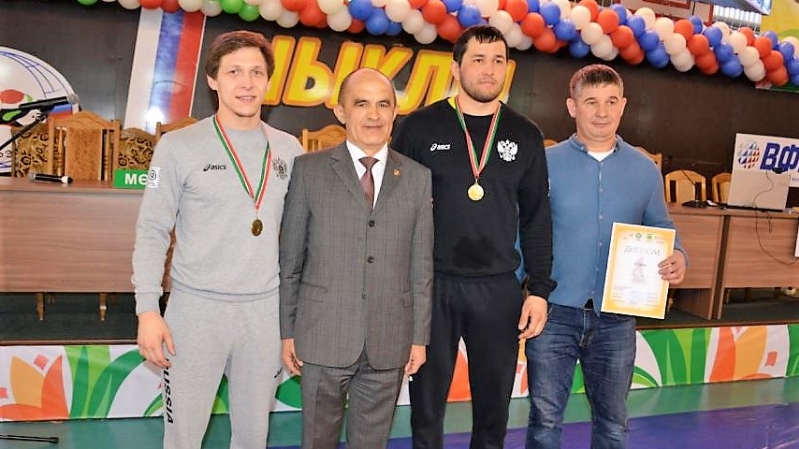 В универсально-спортивном комплексе “Батыр” завершился турнир по борьбе, посвященный памяти Мусы Джалиля, команда Актанышского района заняла второе место. Глава района Энгель Навапович Фаттахов с чемпионами Актанышского района - Искандером Муртазиным и Ильнаром Галимовым.
