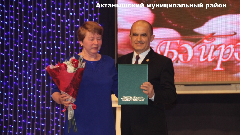 За большой вклад в социально-экономическое развитие района, многолетний плодотворный труд Почетной грамотой главы Актанышского муниципального района награждены: Хусаинова Флюса Рафаеловна-общество с ограниченной ответственностью “Алга”, Шаехова Фрида Махияновна-бухгалтер общества с ограниченной ответственностью “Башак”, Вазетдинова Танзиля Мирфайдовна-заместитель директора по воспитательной работе Бугадинской общеобразовательной школы, Харрасова Нурания Фаисовна-фельдшер Старо-Зияшевского фельдшерско-акушерского пункта, инструктор по физкультуре Актанышского детского сада № 4 Сарварова Альбина Эрнестовна.
