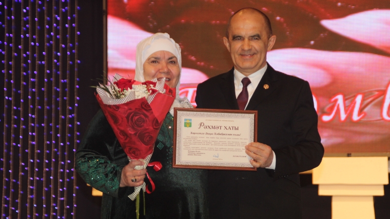 За большой вклад в социально-экономическое развитие района, многолетний плодотворный труд Благодарственным письмом главы Актанышского муниципального района награждены телятница отделения Чуганак агрофирмы “Актаныш” Гафурова Татьяна Алексеевна, бухгалтер общества с ограниченной ответственностью “Наратлы” Марданова Назля Котдусовна, учитель вокального отделения Актанышской детской школы искусств Исламова Сирина Муллаяновна, заведующая столовой Актанышского хлебоприемного предприятия Ахтямова Гульнара Борисовна, начальник отдела кадров филиала “Актаныш-информ” акционерного общества “Татмедиа” Мингазова Далия Азгаровна, председатель союза мусульманок Актанышского района Закирова Зухра Хабибрахмановна, ведущая семейной школы в районе Шайгарданова Файма Зиннуровна.