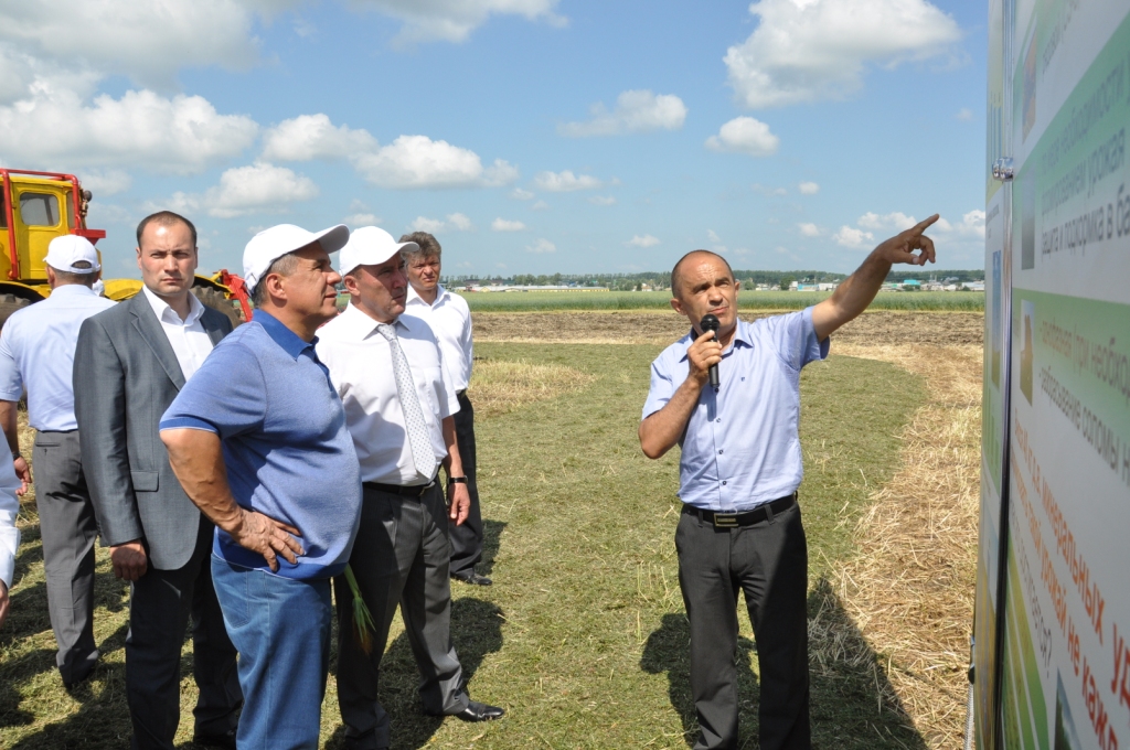 В ходе осмотра выставки, организованной на полях хозяйства «Башак», Президент РТ ознакомился с образцами представленной сельхозтехники, с новейшими технологическими разработками в сфере земледелия, растениеводства и животноводства.