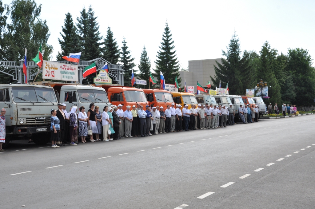Сегодня первые 19 грузовых автомобилей с зерном торжественно направились в элеватор ОАО “Актанышское хлебоприемное предприятие”. Это первый хлеб, собранный на полях Актанышского района. В празднике первого урожая принял участие глава Актанышского муниципального района Э.Н.Фаттахов.