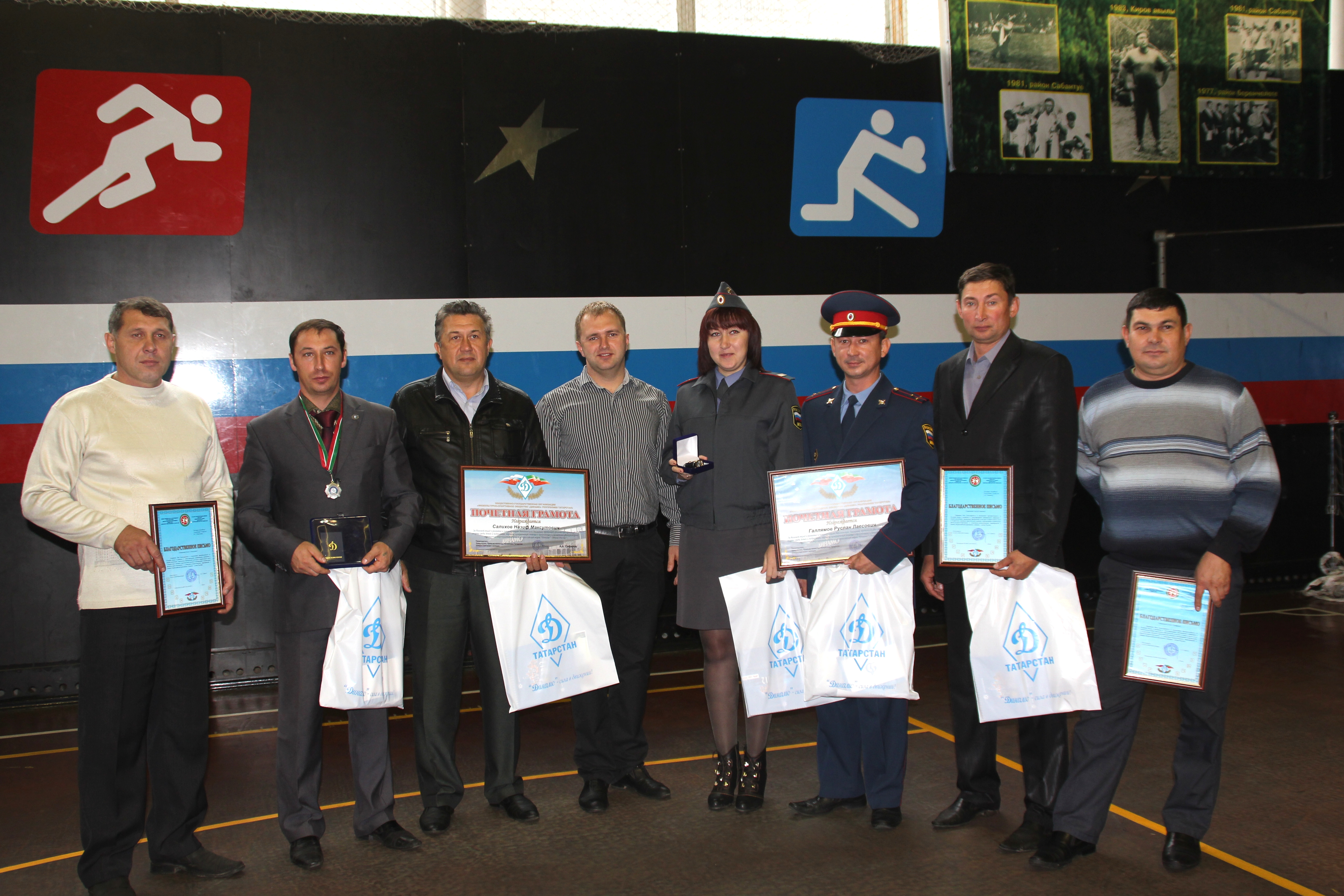 Почетной грамотой ОГО ФСО «Динамо» РТ были награждены старший лейтенант внутренней службы Р.Галлямов, ветеран МВД по РТ и динамовского движения Н.Салихов, майор юстиции, старший следователь отдела МВД Росси по Актанышскому муниципальному району РТ Б.Атнагулов.