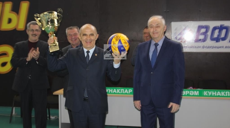 Исполнительный директор федерации волейбола Татарстана Мансур Каримов вручил главе Актанышского района Энгелю Фаттахову кубок победителя и специальный мяч.