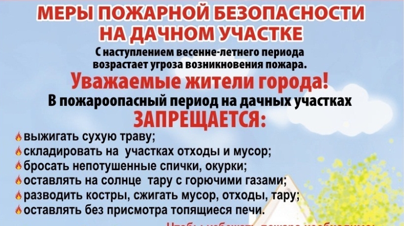 Уважаемые садоводы, согласно правилам пожарной безопасности для садоводческих това­риществ и дачно- строительных кооперативов, вы обязаны: