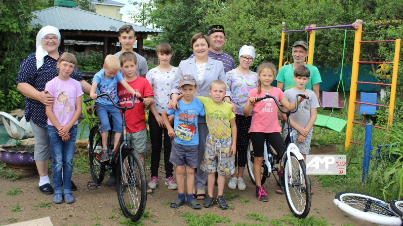 Сегодня глава Актанышского района Энгель Фаттахов подарил велосипеды 10 детям из семьи Сабитовых, проживающим в селе Кирово. Руслан, Алина, Лиана, Лилия, Риана, Альфред, Лев, Индира, Максим, Артем стали обладателями нового велосипеда.