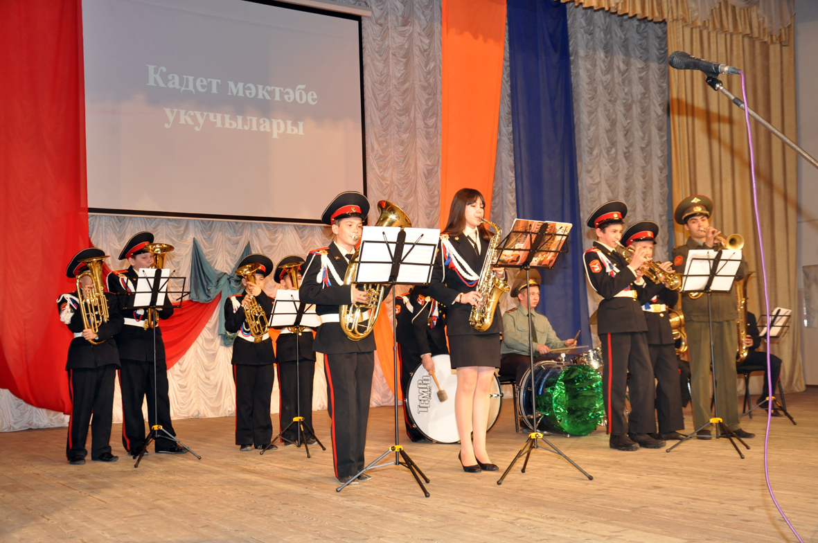 Праздничный концерт Государственного ансамбля песни и танца “ Агидель” и выступления учащихся кадетской школы тесно сплетались показом видеосюжетов местного телевидения “Актаныш ТВ” о ветеранах ВОВ и воинах-интернационалистах района.