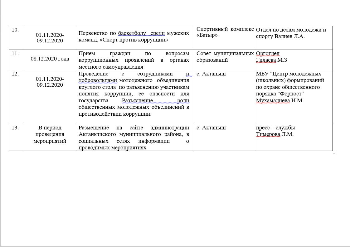 ПЛАН МЕРОПРИЯТИЙ, приуроченных   к Международному дню борьбы с коррупцией