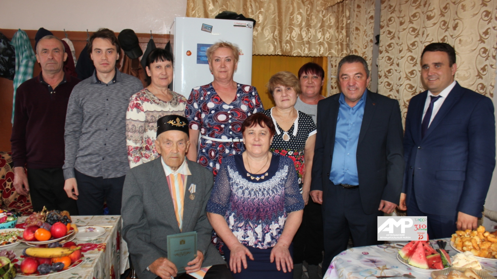 С днем рождения поздравил юбиляра и руководство Актанышского района. Начальник отдела социальной и просветительской работы Альберт Мансуров вручил Раису Хусаенову поздравительную открытку Президента России Владимира Путина и подарок от главы Актанышского района Энгеля Фаттахова.