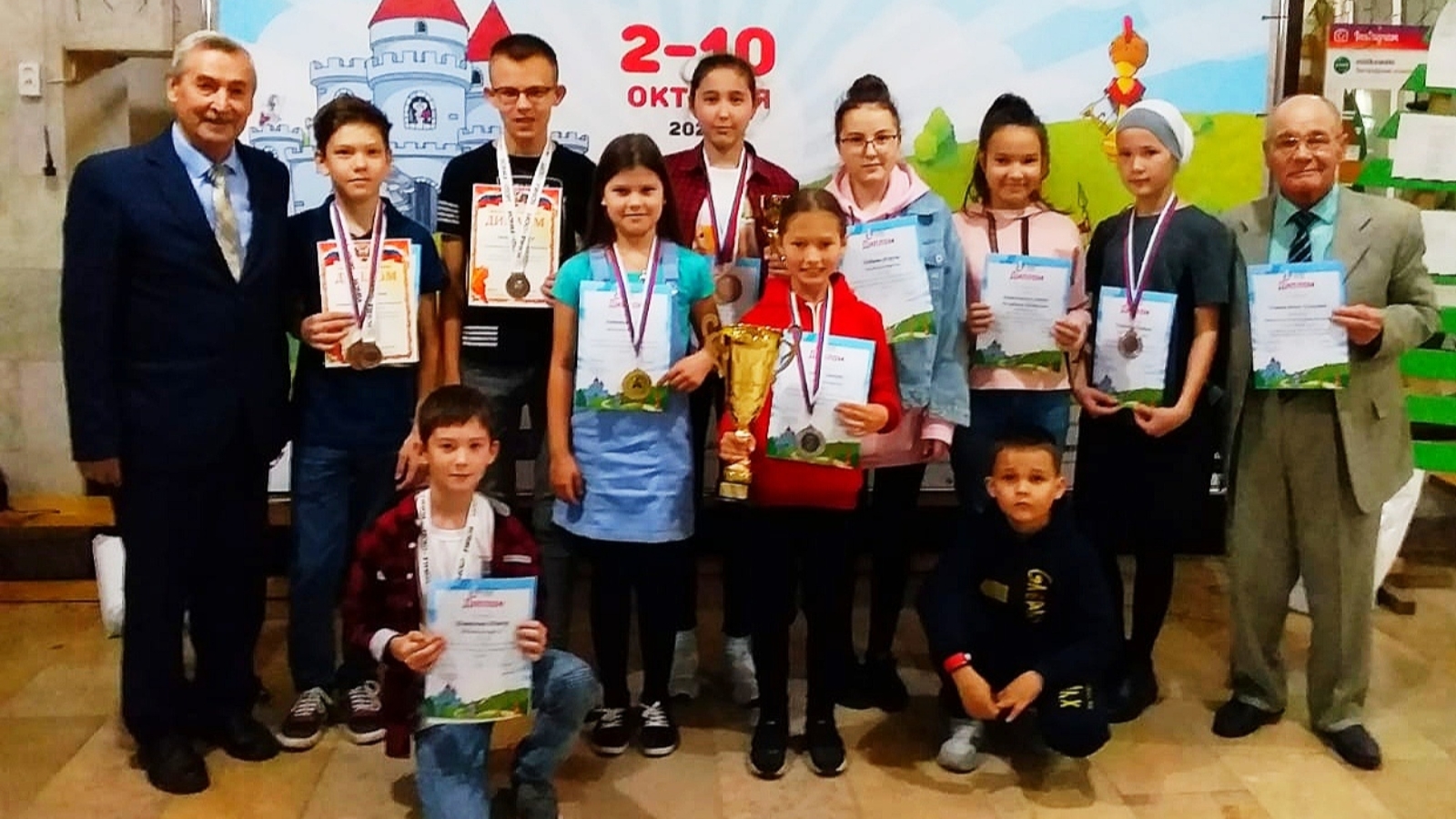 2- 10 октября в городе Самара прошли всероссийские соревнования по классическим шахматам среди учащихся проживающих в сельской местности. Всего участвовало 42 команды. В личном первенстве играли 121 мальчиков и 49 девочек. Команда Актаныша набрала одинаковое количество очков с шахматистами из Йошкар-Олы, но по дополнительным показателям стала третьей. В соревновании по возрастам Набиева Фируза и Латыпова Раяна стали чемпионками, Рахманова Зайнап Латыпов Данияр, Шаязданов Тимур, Галиева Замира заняли 2 места.