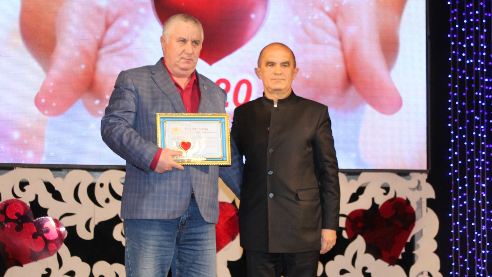 На Марафоне Милосердия глава Актанышского района Энгель Фаттахов вручил звание “Человек с золотым сердцем” и его символику предпринимателю Рузалу Мингазову, руководителю сети магазинов “АльМиГа” Ралифу Фахрутдинову, руководителю общества “Теплосервис” Дилфату Нагимову.
