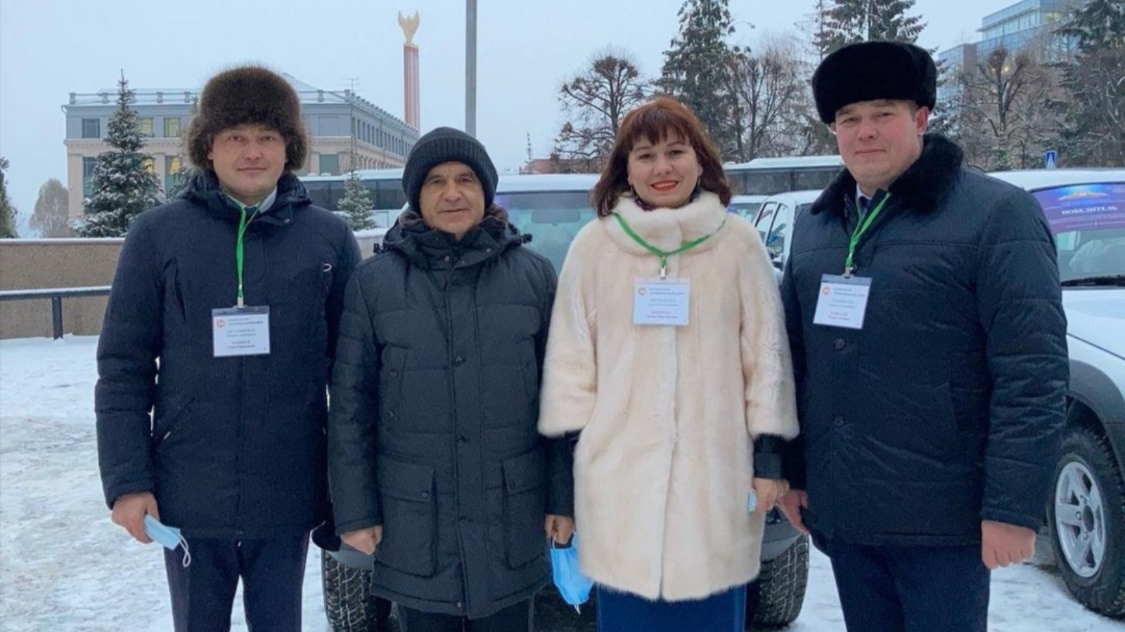 На площади перед Госсоветом победителям республиканского смотра-конкурса среди муниципальных образований РТ - главам сельских поселений Татарстана-были вручены ключи от машин.