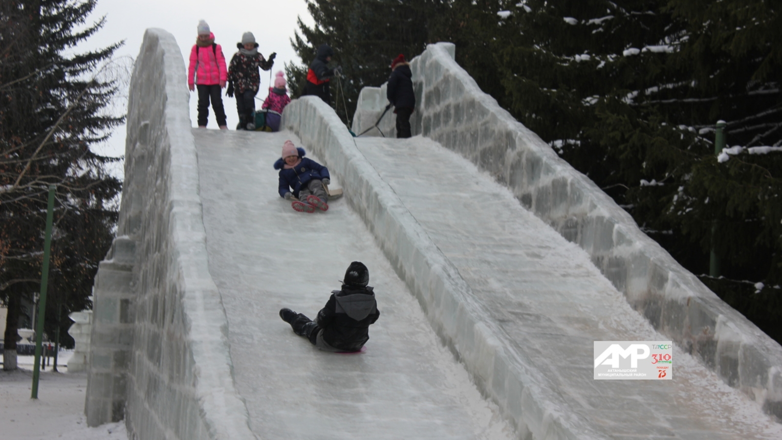 Ледяная гора, построенная в этом году в Актанышском парке Ленина, стала своеобразным украшением площадки для проведения новогодних мероприятий.