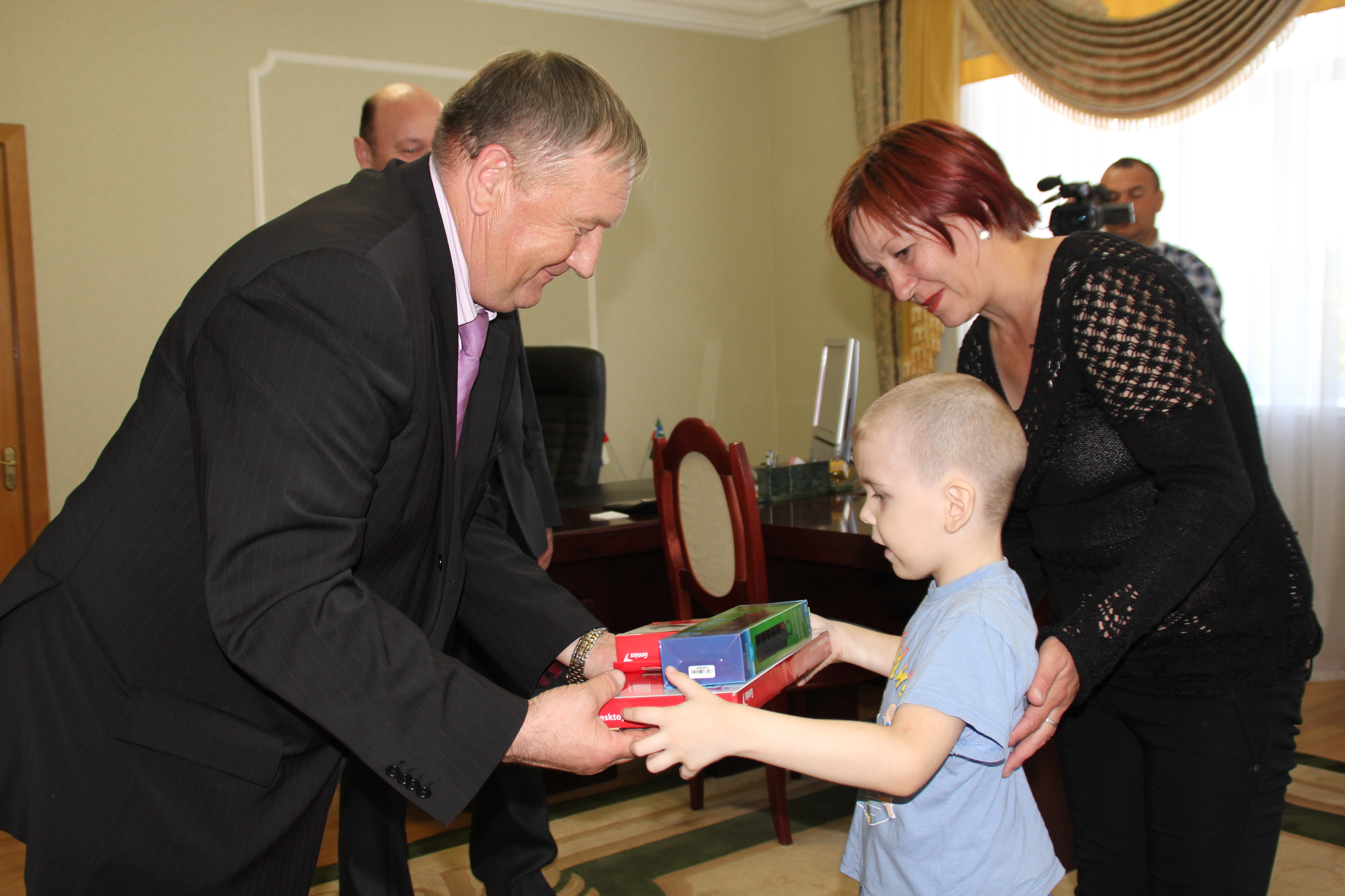Дети-инвалиды вместе с родителями в канун праздников были приглашены на прием к руководителю исполнительного комитета Актанышского муниципального района Фаилю Камаеву. Генеральный директор общества «ТМСиБ» Александр Высоцкий, принимавший участие во встрече, вручил детям компьютеры. Их получили 7 человек. Тем, кто не смог присутствовать на встрече, компьютеры были вручены на дому, и стали настоящим подарком к первомайским праздникам.