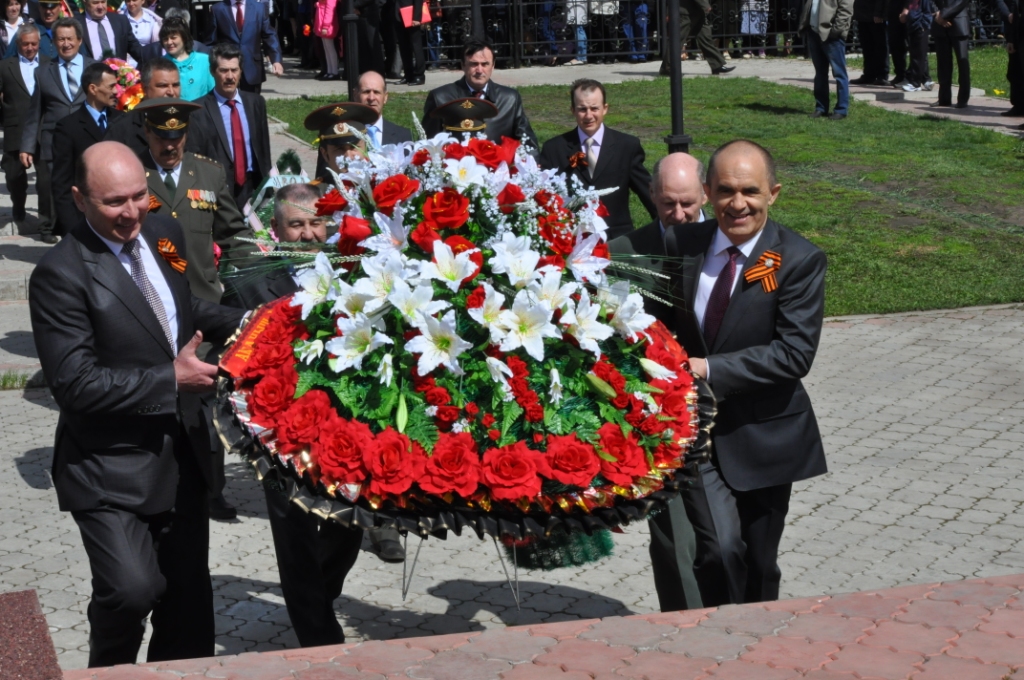 Участники торжества почтили минутой молчания светлую память погибших в боях с гитлеровским фашизмом и в честь Дня Победы возложили венки к Вечному огню у памятника Неизвестному солдату.