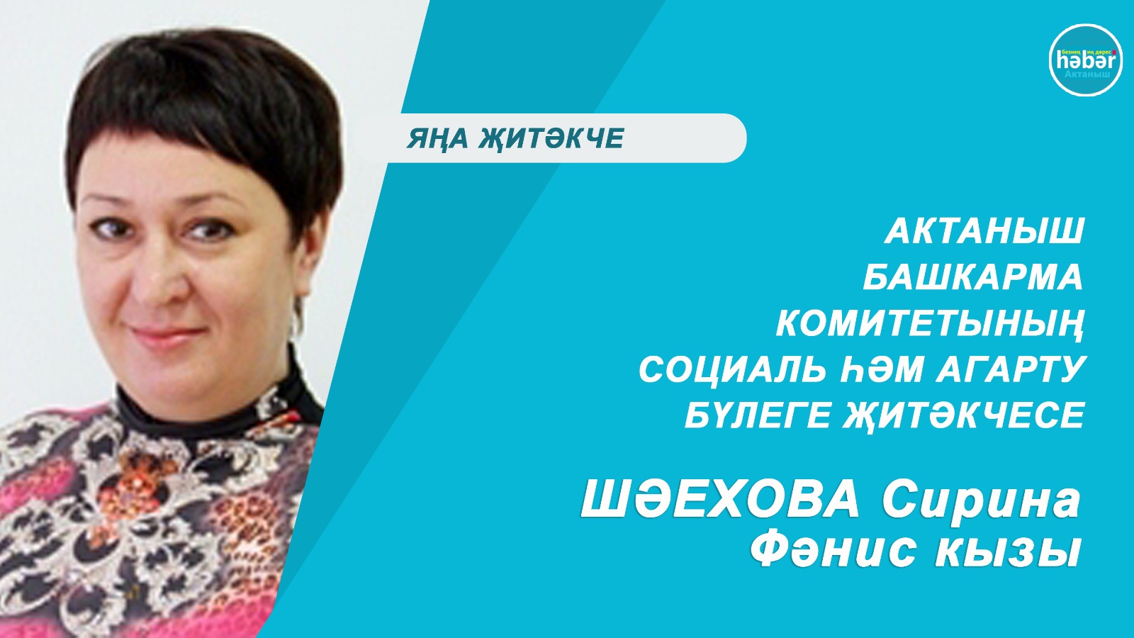 Руководителем отдела социальной и просветительской работы исполнительного комитета Актанышского муниципального района назначена Шаехова Сирина Фанисовна.