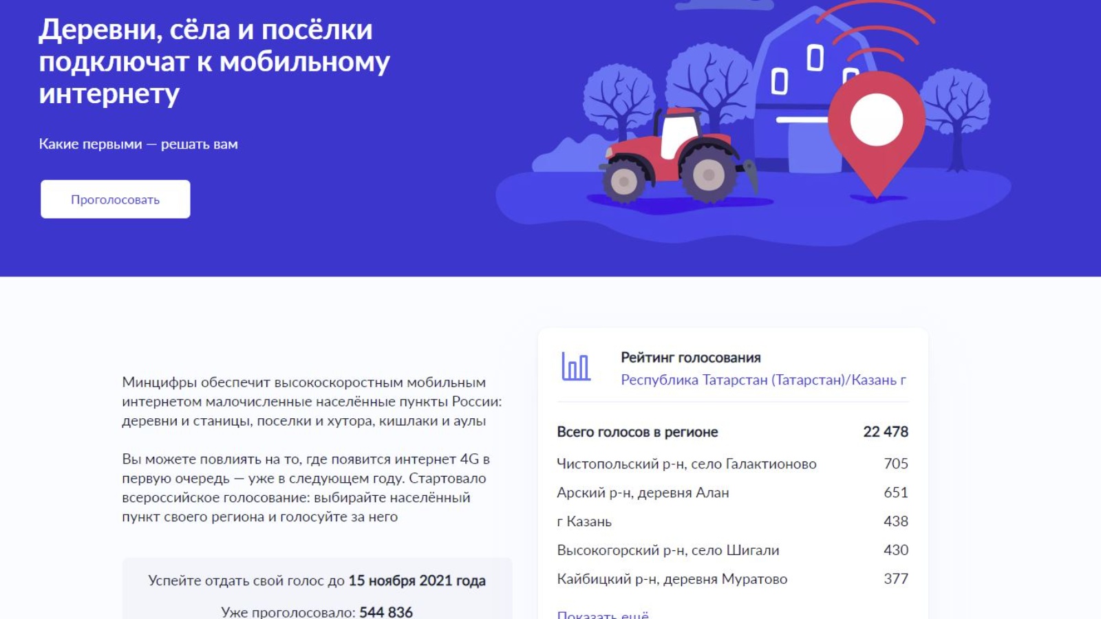 От Актанышского района в голосовании участвует деревня Ямалы. Чтобы населенный пункт подключили к мобильной связи 4G (LTE), необходимо проголосовать за него на портале Госуслуг до 15 ноября 2021 года. Для участия в голосовании гражданину нужна подтвержденная учетная запись на портале Госуслуг РФ и постоянная регистрация в регионе, за который голосует пользователь.