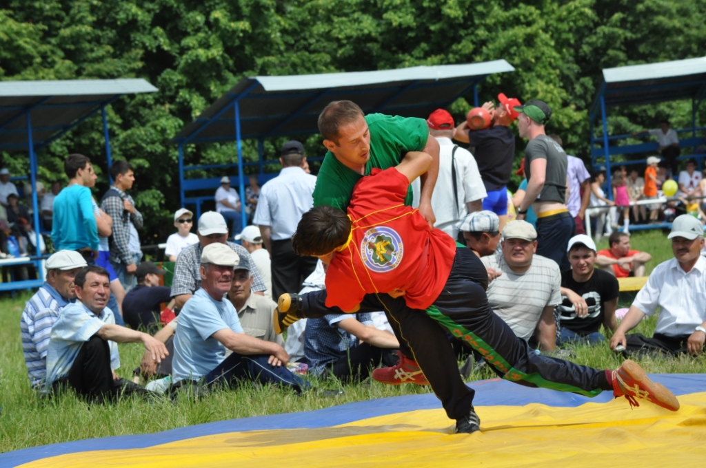 Ат чабышлары белән бергә Сабантуйның төп бәйгесе — көрәш башлана. Башка халыкларның шуңа охшаш көч сынашларыннан татар көрәше көрәшчеләрнең бер-берсенең билләрен сөлге белән урап тотуларына карап аерыла. Милли көрәш нэтижәләре: