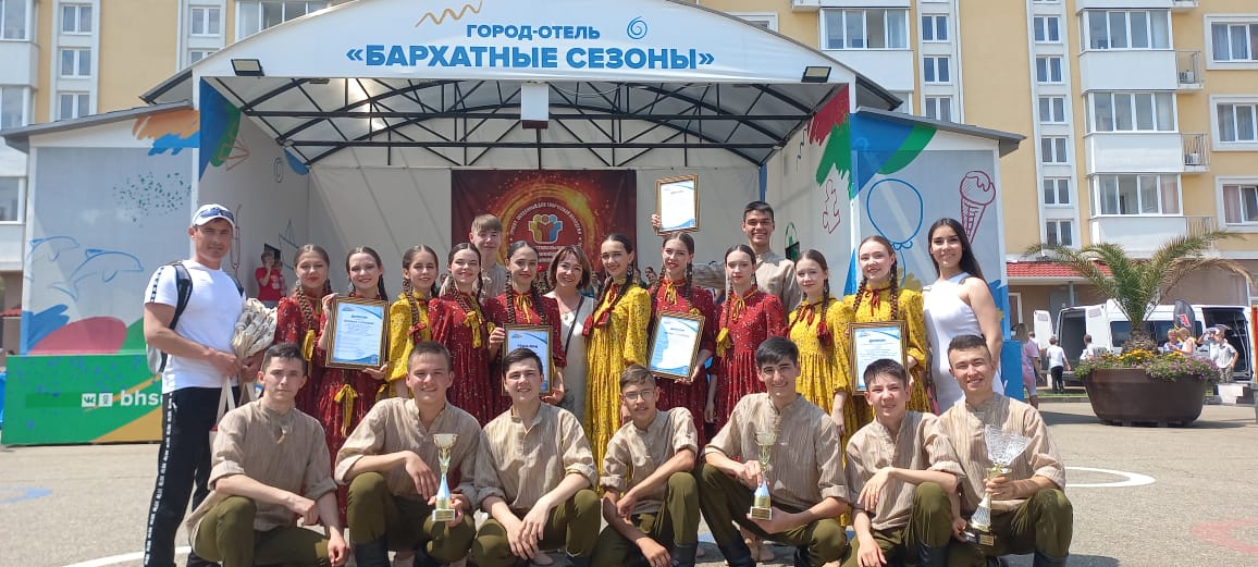 На IV Всероссийском хореографическом конкурсе "Бархатное лето" в г. Сочи танцевальному ансамблю "Ак инеш" не было равных. Получив 1 место в 2 номинациях, они завоевали ГРАН-При конкурса! От всей души поздравляем наших ребят и руководителя ансамбля Лилию Фатхуллину с победой!