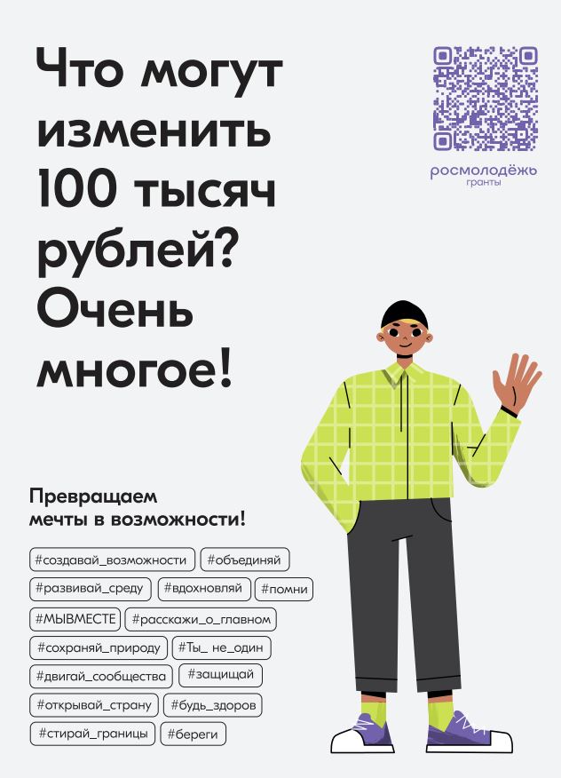 Конкурс направлен на вовлечение молодежи Российской Федерации в творческую деятельность и социальную практику, а также на повышение гражданской активности, формирование здорового образа жизни и раскрытие потенциала молодежи в интересах развития страны. В Конкурсе могут принять участие граждане Российской Федерации в возрасте от 14 до 35 лет, которые в случае победы смогут получить поддержку на реализацию своего уникального проекта. Прием заявок осуществляется до 22 июля 2022 года через автоматизированную информационную систему «Молодежь России» по ссылке: https://grants.myrosmol.ru/events/79808bdb-3dc5-4db7-9657-5bf592f0caee.