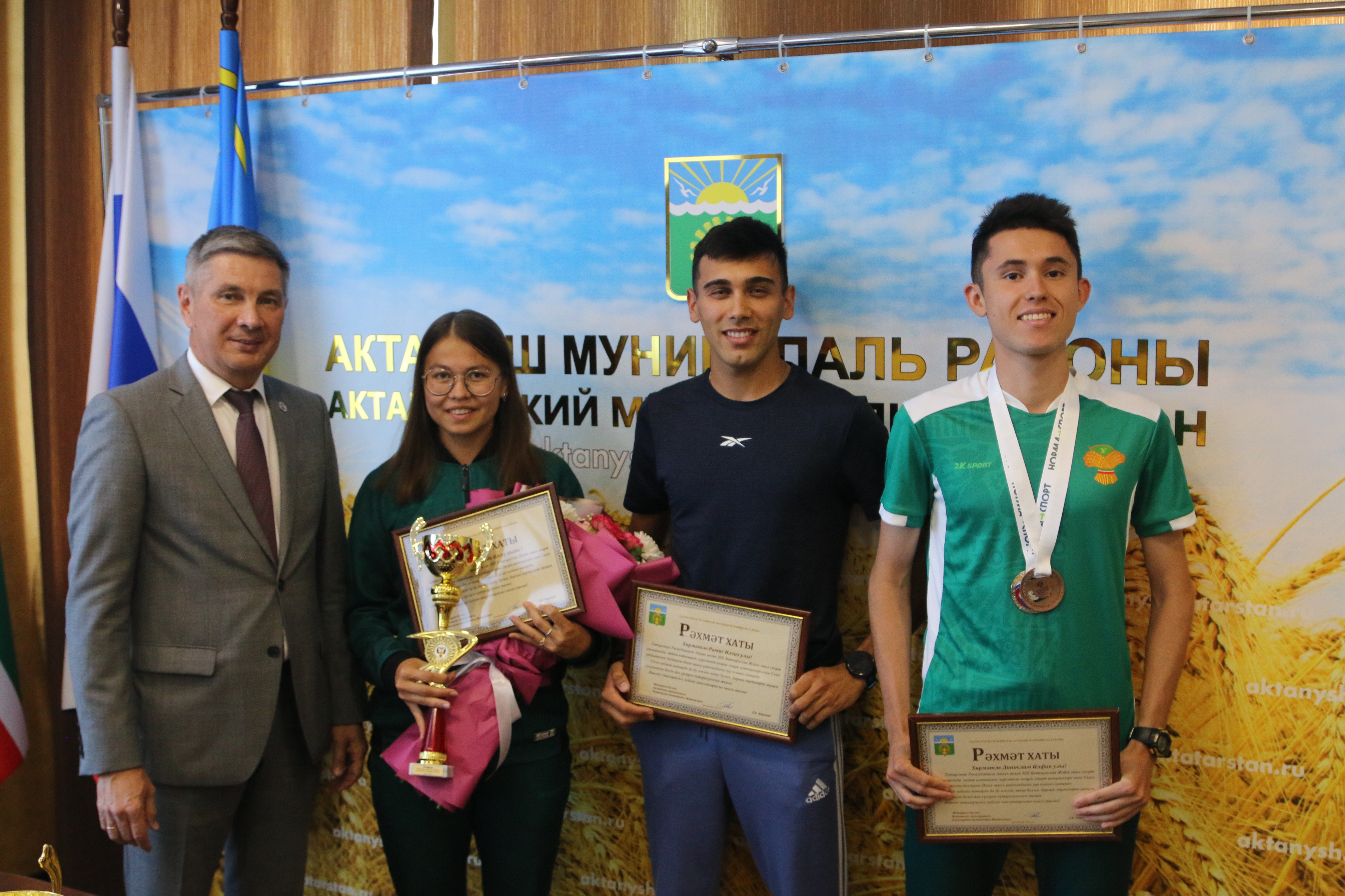 Руководитель исполнительного комитета Ленар Зарипов встретился со спортсменами, участвовавшими в XIII Всероссийских летних спортивных играх в г. Омске с составе сборной Республики Татарстан. Он искренне поздравил их с победой и вручил благодарственные письма.