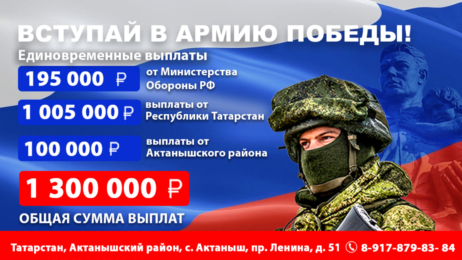 Всю необходимую информацию можно узнать в военном комиссариате Актанышского района или по телефону 8-917-879-83-84