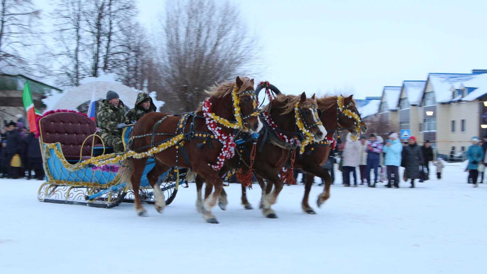 Главным событием праздника, безусловно, стал парад запряженных троек. Парад собрал множество зрителей, которые восхищенно аплодировали и фотографировали этот чудесный момент. Картину создавали не только сами тройки, но и их удивительные экипажи, украшенные гирляндами и новогодними мотивами.