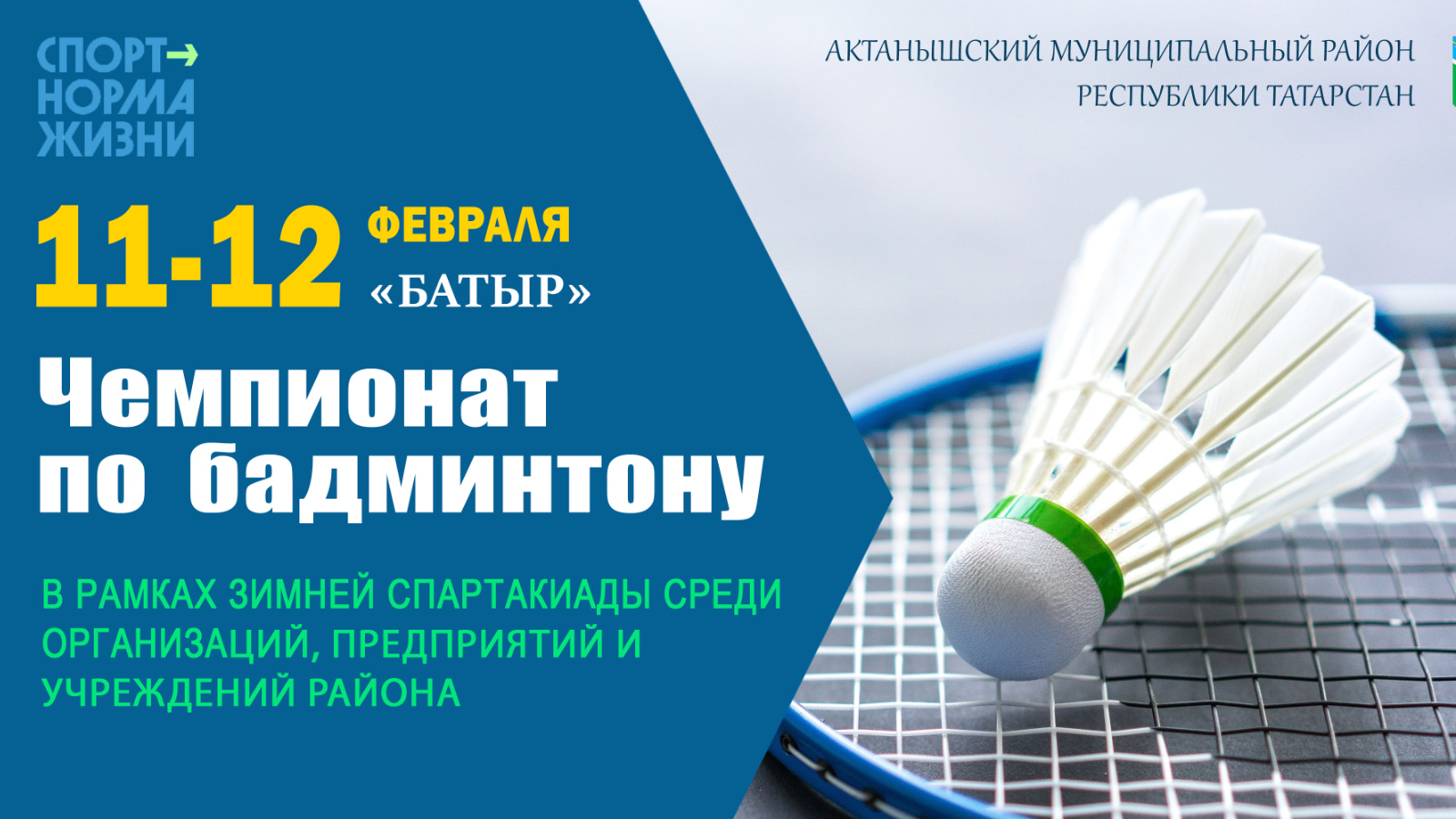 11-12 февраля в спортивном комплексе "Батыр" пройдет Чемпионат района по бадминтону в рамках зимней Спартакиады среди трудящихся организации, предприятий и учреждений района.