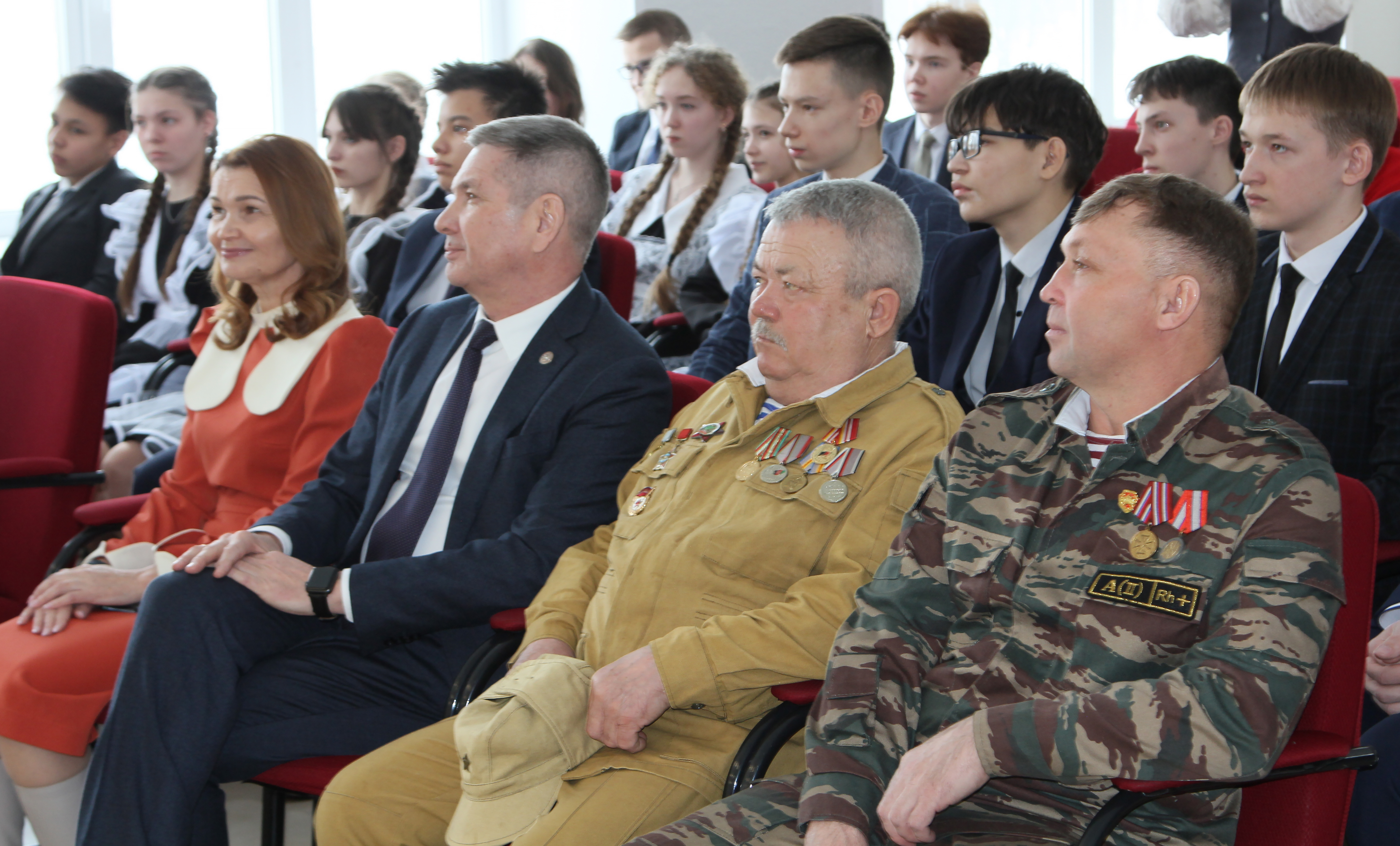 Вместе с Ленаром Рафаковичем в уроке приняли участие ветераны афганской и чеченской войн, чей боевой опыт и преданность Родине стали наглядным примером для подрастающего поколения. Урок вел учитель истории Руслан Сафиуллин, умело направляя дискуссию и акцентируя внимание на ключевых аспектах патриотизма..jpg)