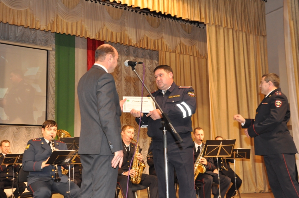 Мероприятия, посвященные Дню сотрудника внутренних дел, были продолжены во Дворце культуры района, где оркестр МВД Татарстана дал большой праздничный концерт.