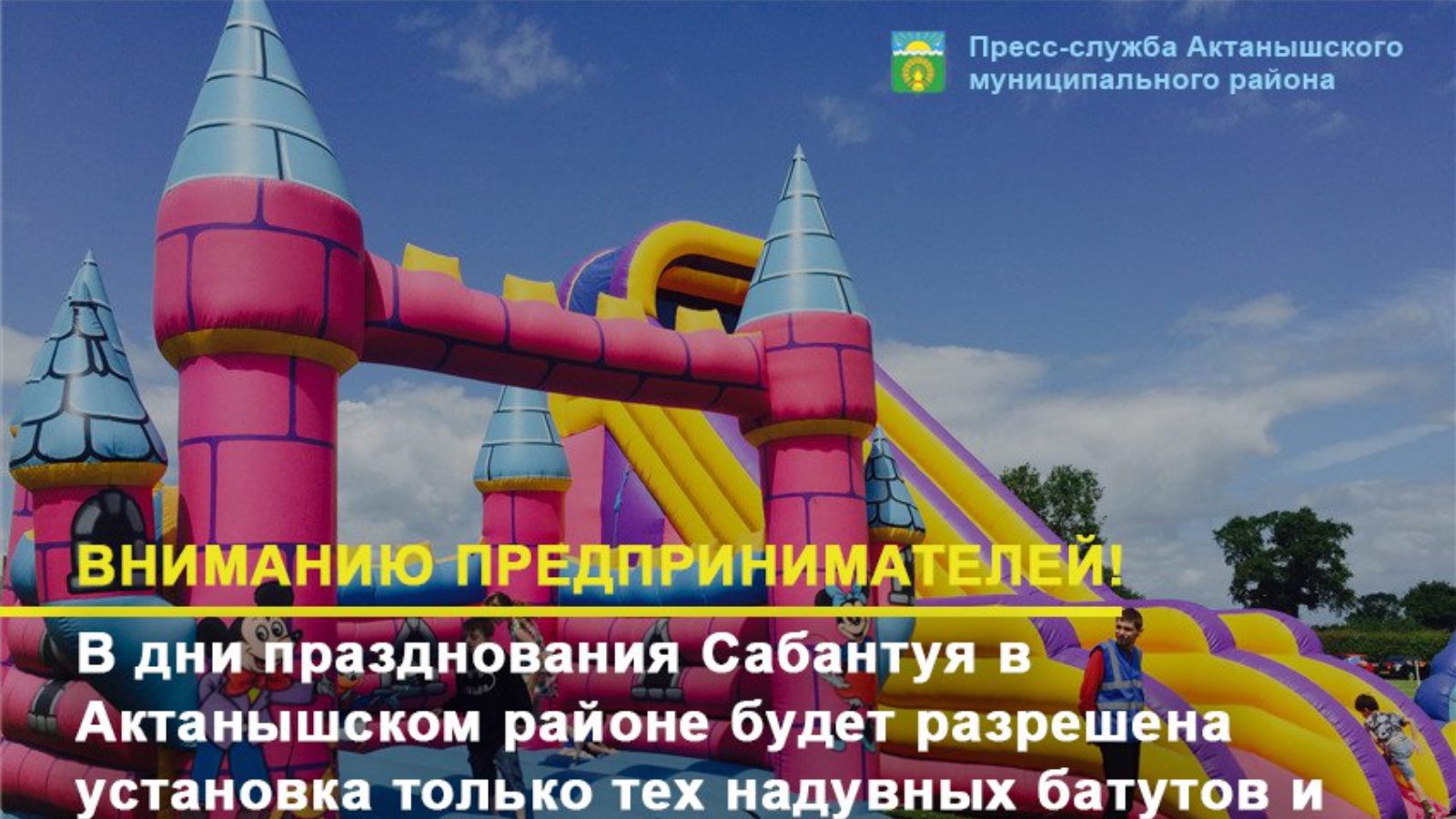 В дни празднования Сабантуя в Актанышском районе будет разрешена установка только тех надувных батутов, а также каруселей и атракционов которые прошли официальную регистрацию в Гостехнадзоре и отвечают требованиям безопасности.
