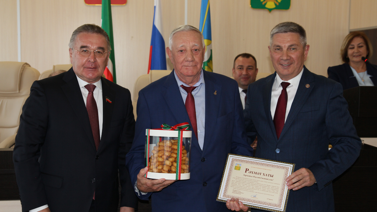 В I-ом заседании Совета Актанышского муниципального района Республики Татарстан пятого созыва глава района Ленар Зарипов выразил благодарность депутатам предыдущего созыва за самоотверженный труд на благо общества. В знак признания их заслуг состоялось торжественное награждение Благодарственными письмами и традиционным чак-чаком, символизирующим гостеприимство и уважение.