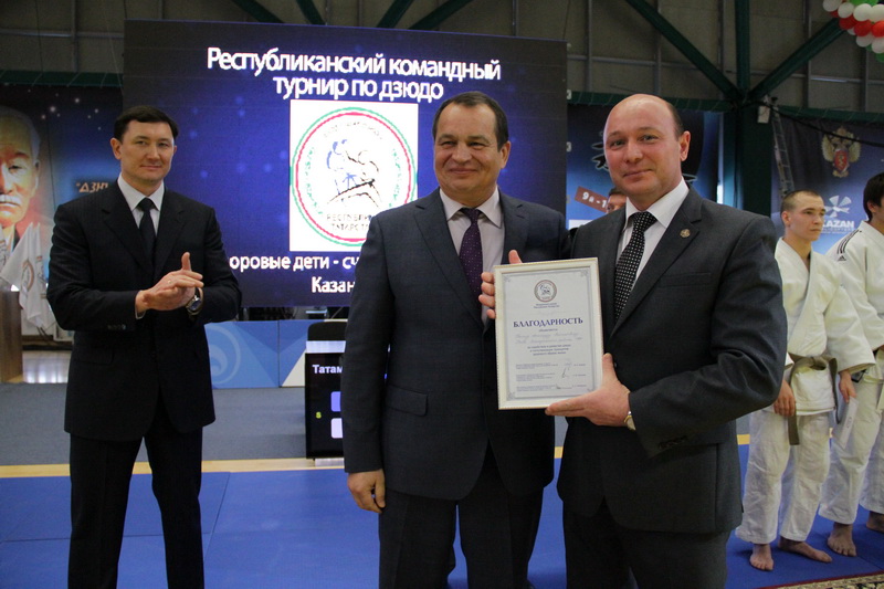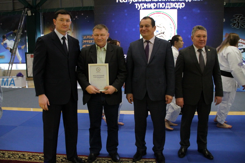 Руководитель Федерации дзюдо РТ вручил главе района Фаилю Камаеву Благодарственное письмо за достигнутые успехи в развитии этого вида спорта, а также сертификат на татами для проведения соревнований