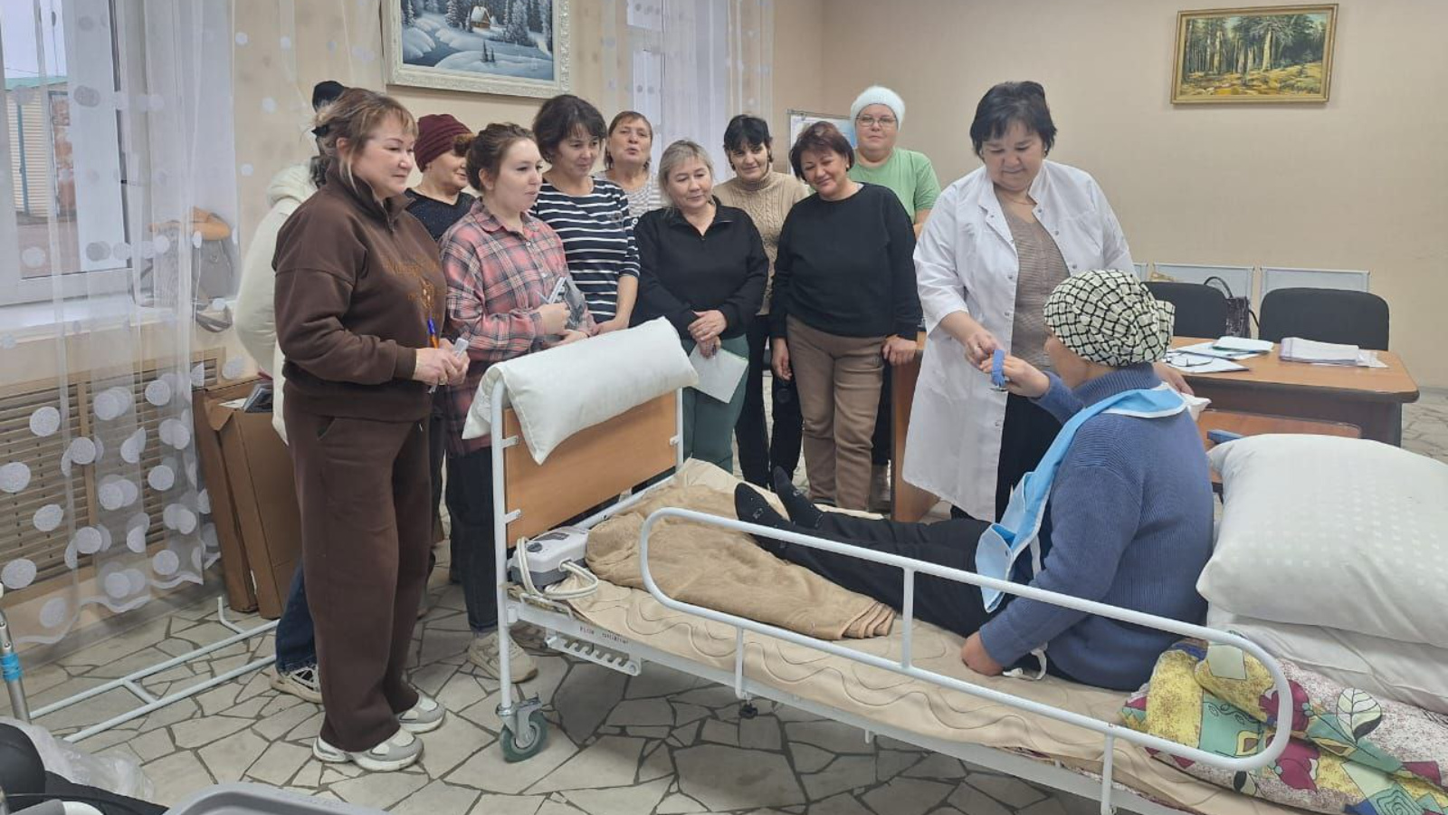В целях внедрения системы продолжительного ухода за пожилыми гражданами и инвалидами, нуждающимися в посторонней помощи, в рамках федерального проекта "Старшее поколение" национального проекта "Семья", медсестра Шангараева Гульшат Тагировна организовала обучающее мероприятие для социальных работников, оказывающих помощь маломобильным гражданам. Основная тема занятия: "Особенности организации питания для лиц с ограниченной подвижностью. Практические аспекты кормления".