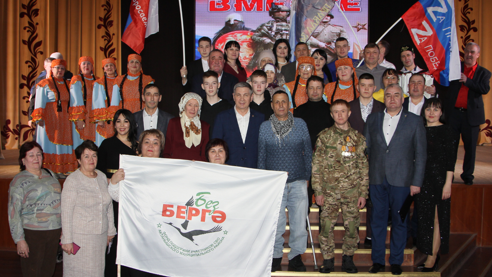 12 февраля в честь годовщины фонда «Мы вместе» в Актаныше прошел благотворительный концерт в поддержку участников специальной военной операции, который собрал под одной крышей людей, чьи сердца бьются в унисон с теми, кто сейчас несет службу. На сцене разворачивалась настоящая мозаика талантов: здесь были и именитые артисты, чьи голоса заставляли зал замирать, и юные студенты, полные амбиций и мечтаний, и школьники с горящими глазами, жаждущие поделиться своим творчеством.