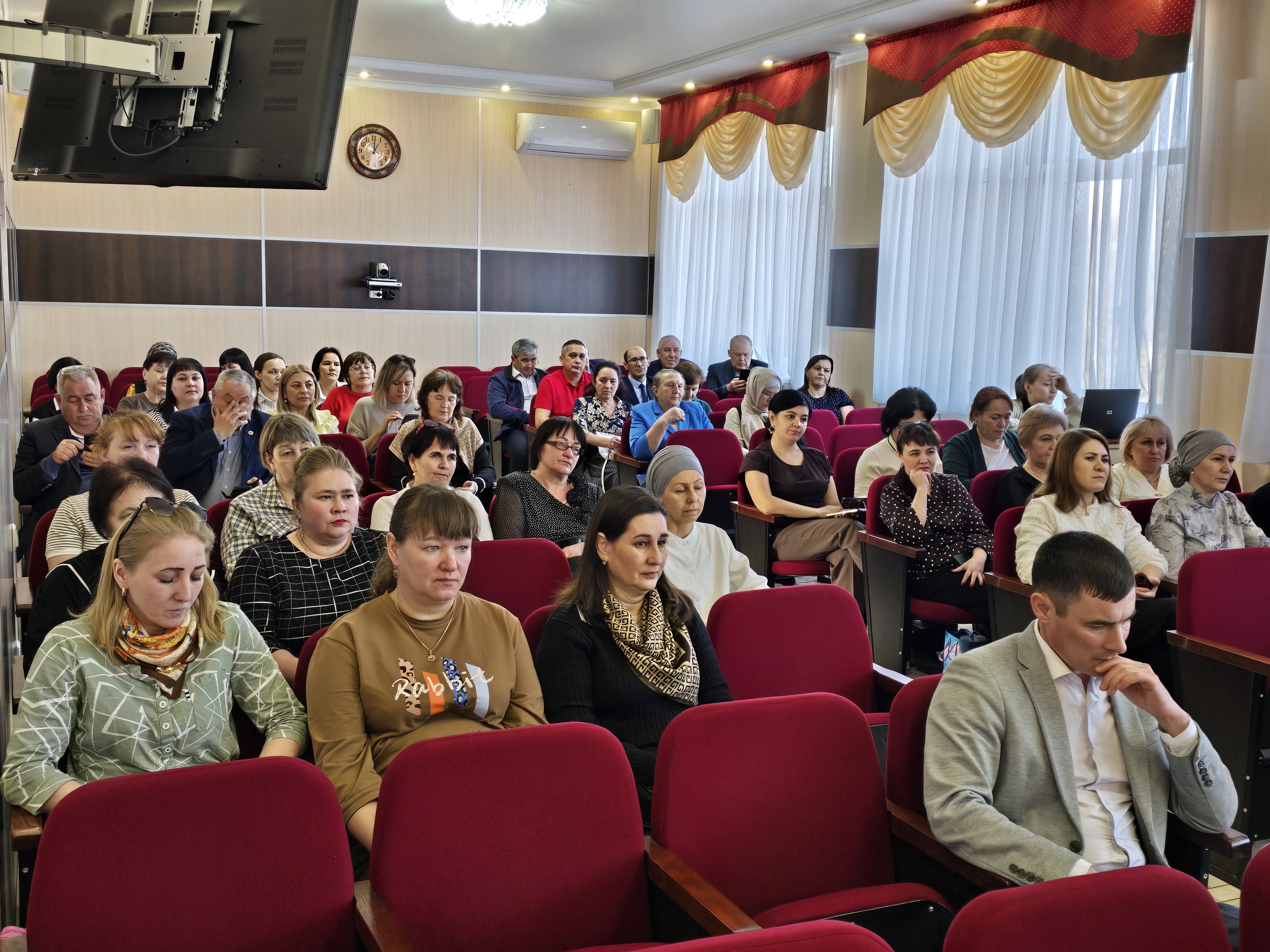 Г.Г. Зарипова, муниципальный координатор советников директоров по воспитанию, представила доклад о содействии в реализации флагманских проектов в 2026 году. Обсуждались механизмы поддержки инициатив, направленных на патриотическое воспитание, развитие творческого потенциала и формирование здорового образа жизни среди молодежи.