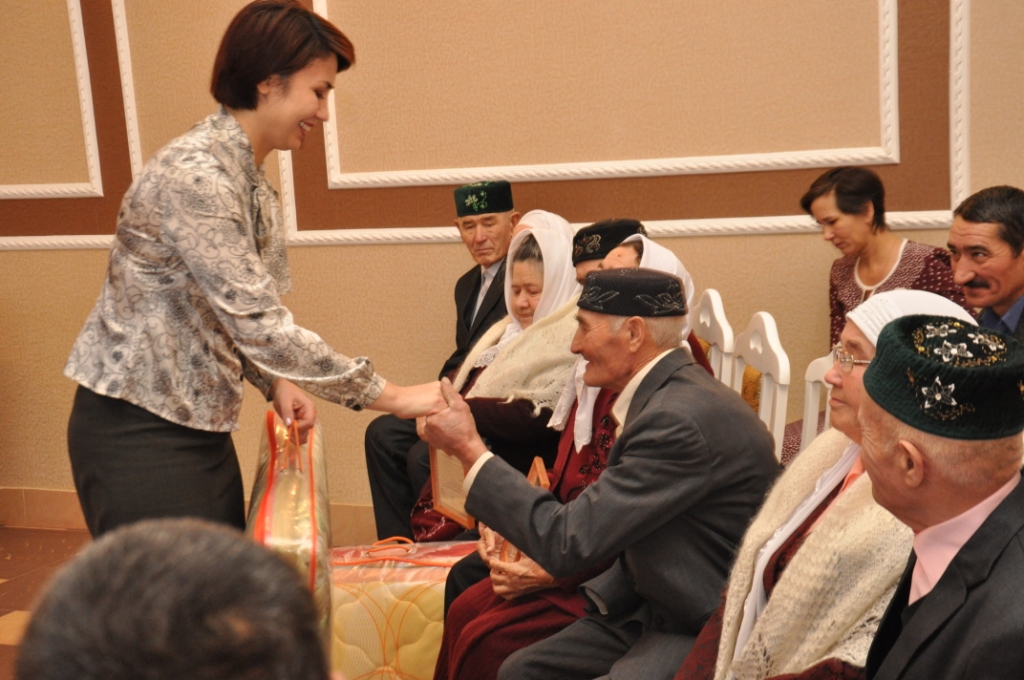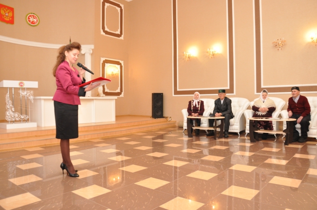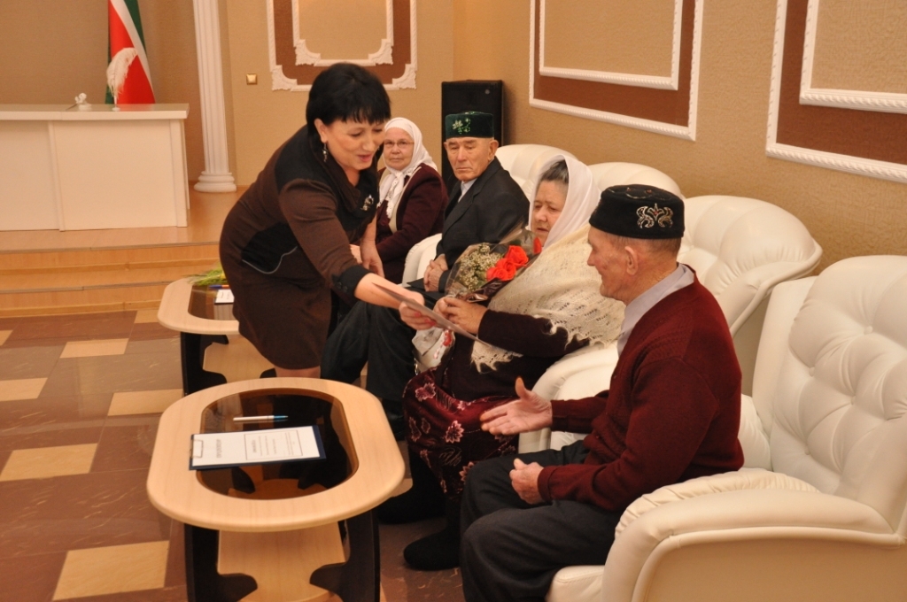 Супружеским парам были вручены Благодарственные письма главы муниципального района и памятные подарки . Торжественное мероприятие вела начальник отдела ЗАГС Гульфина Мухамадиева. Мероприятие сопровождалось концертными номерами . Юбиляров поздравили родственники, дети и внуки.