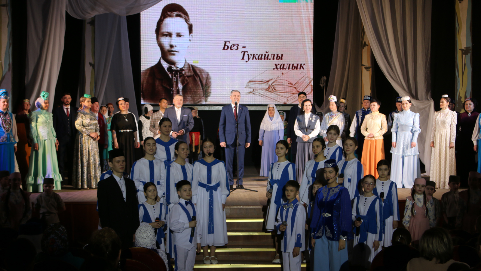 В Актаныше сегодня, 27 апреля 2026 года, продолжаются торжественные мероприятия, посвященные 140-летию со дня рождения Габдуллы Тукая и Дню родного языка. Праздничная программа началась с театрализованного представления и церемонии возложения цветов к памятнику великого татарского поэта.