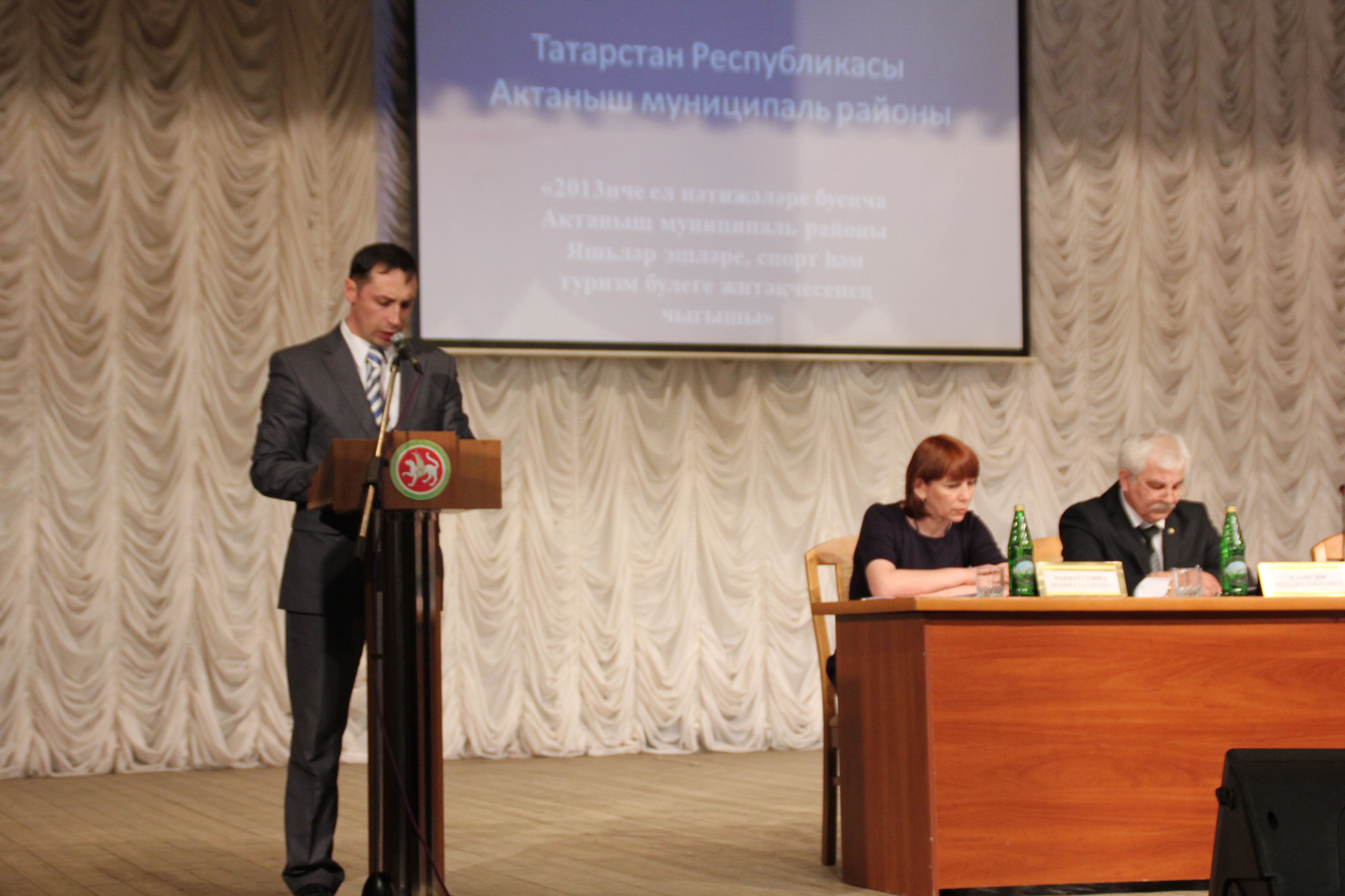 Глава Актанышского муниципального района Фаиль Камаев сегодня, 11 апреля принял участие и выступил в районной конференции по спорту, посвященной итогам 2013 года. В работе форума также участвовали директор Республиканского центра физической культуры и юношеского спорта Министерства по делам молодёжи, спорту и туризму Республики Татарстан Мунира Рахматуллина и председатель ОБЩЕСТВЕННОЙ ОРГАНИЗАЦИИ ФИЗКУЛЬТУРНО-СПОРТИВНОЕ ОБЩЕСТВО «УНЫШ» РЕСПУБЛИКИ ТАТАРСТАН Видади Махмудов.