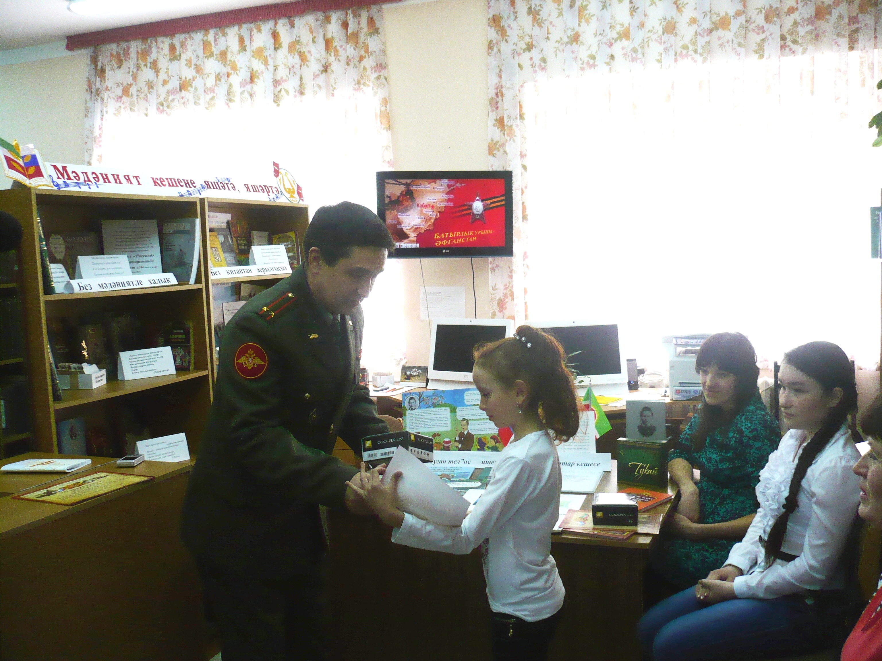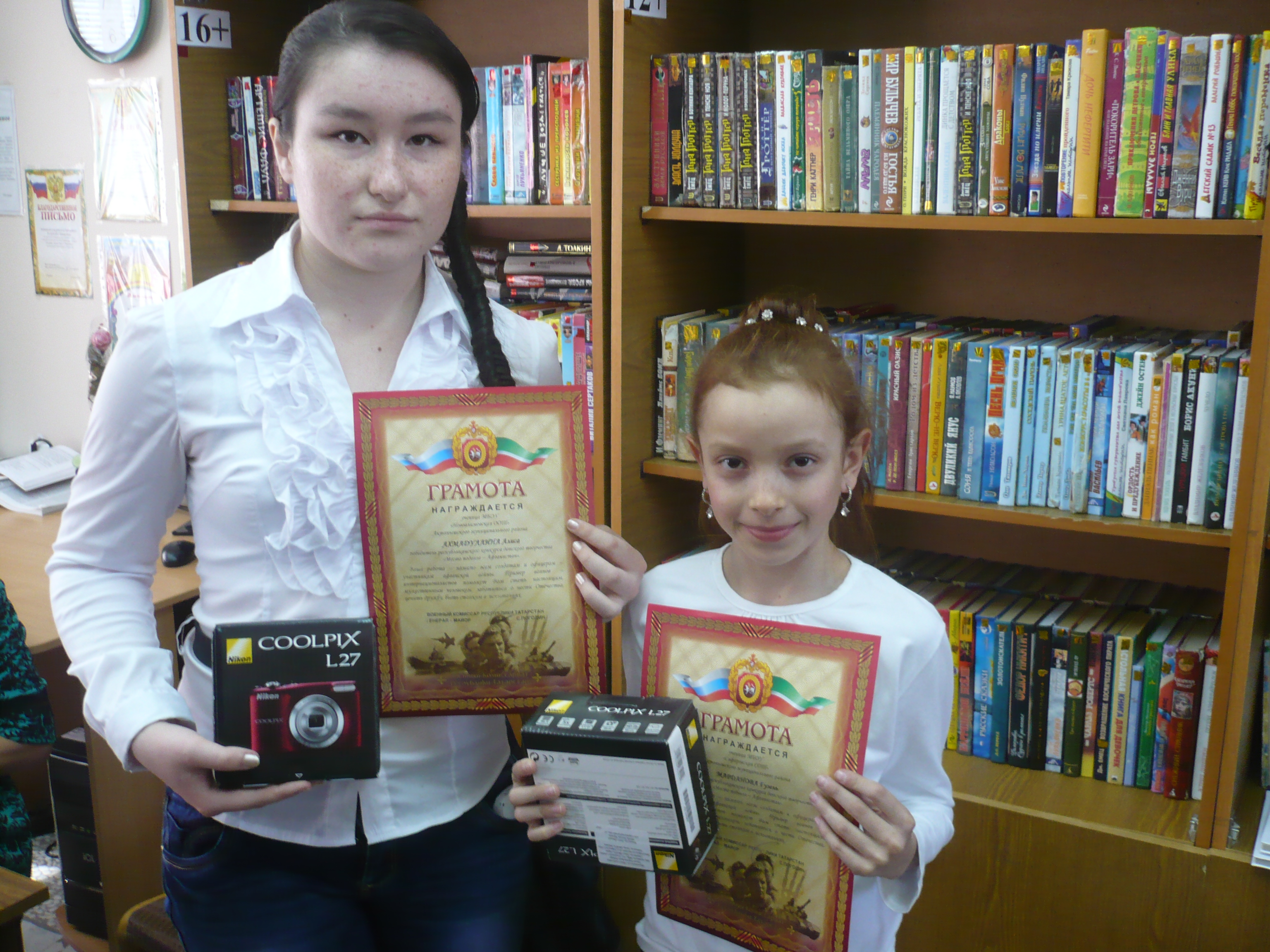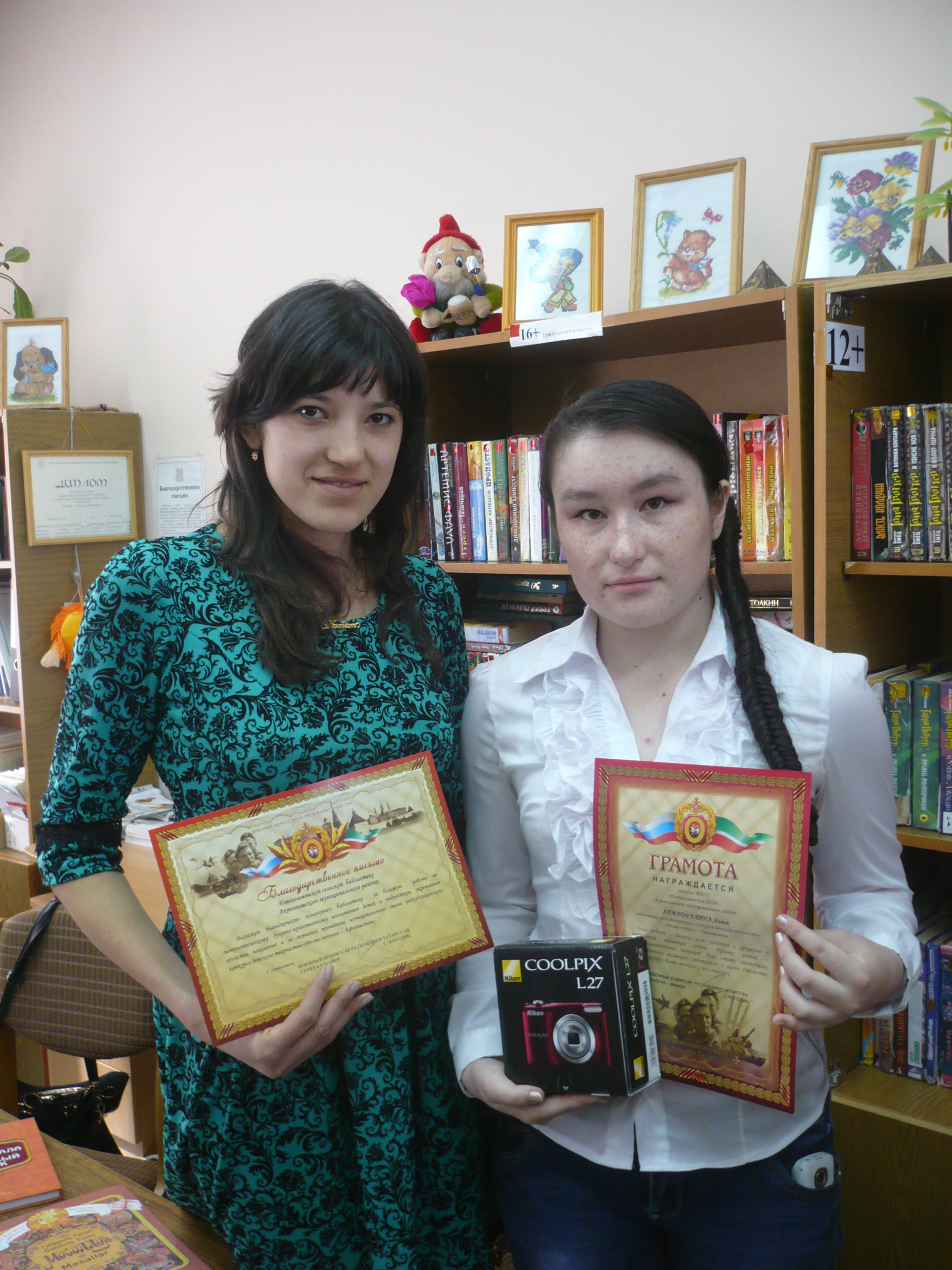 Почетными грамотами и ценными подарками Военного комиссариата Республики Татарстан были награждены Гузель Марданова (Ст.Сафарово) и Алиса Ахмадуллина (Н.Алимово). Так же награждены благодарственными письмами Военного комиссариата Актанышская центральная детская библиотека, организовавшая конкурс в муниципальном этапе и Ст.Сафаровская, Н.Алимовская сельские библиотеки за подготовку своих читателей на конкурс.