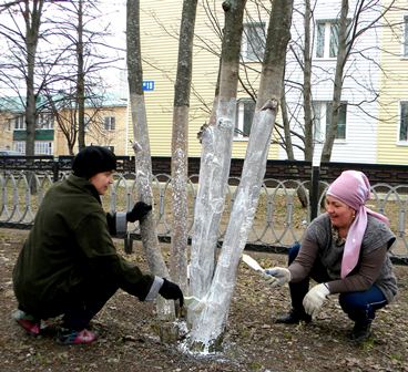 2) белили деревья