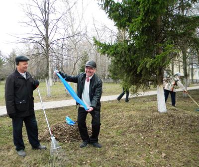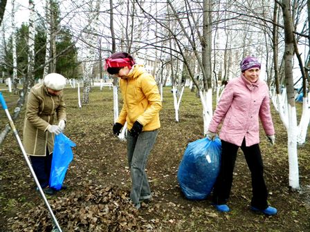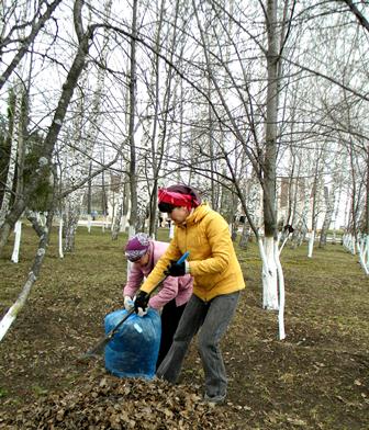 3) старательно собирали прошлогодние листья