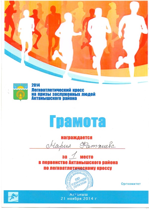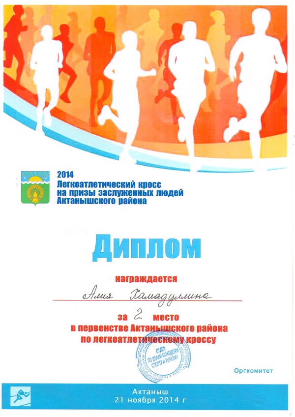 Стали известны итоги легкоатлетического кросса. Ученики Новоалимовской ООШ заняли призовые места! Ученица 7 класса Хамадуллина Алия заняла 2 место, учитель физкультуры Мария Олеговна заняла первое место.