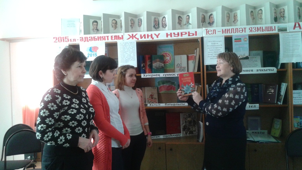 Библиотекари центральной библиотеки провели обзор выставок "Бөек Җиңүгә 70 ел", "Җиңү нуры".