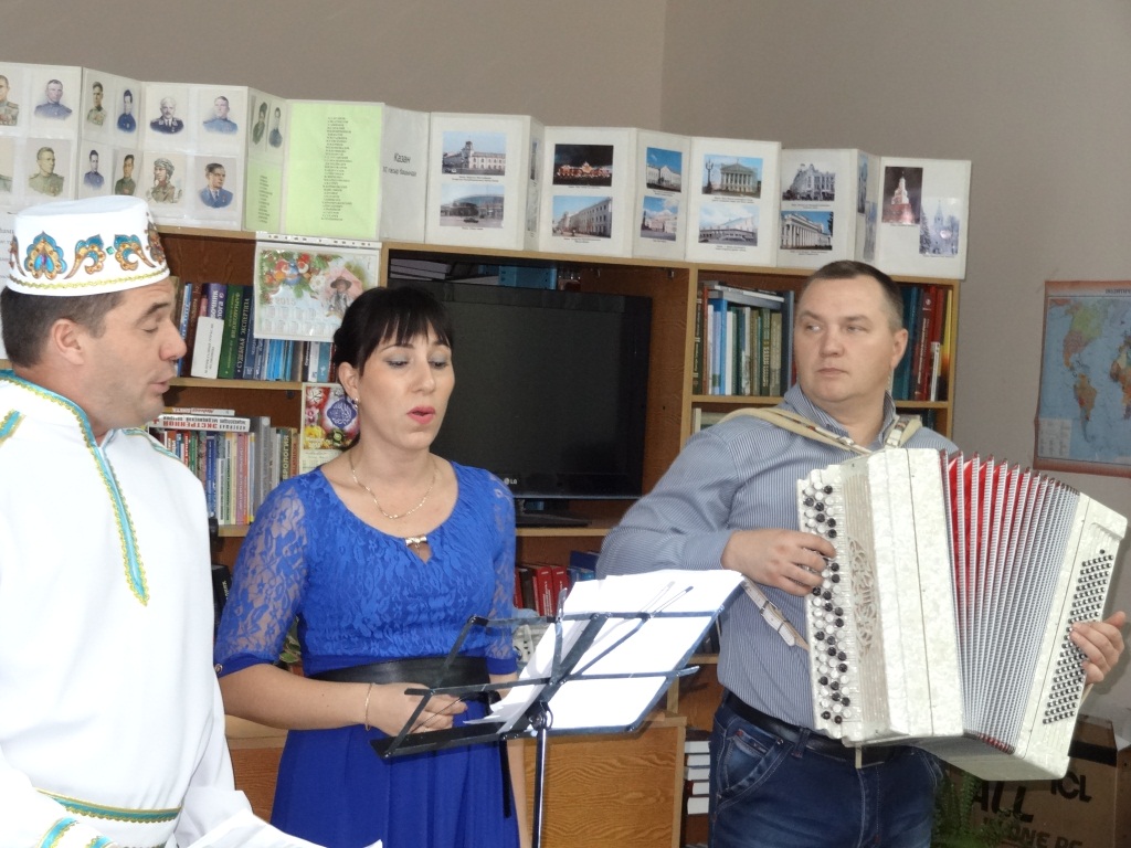Вечер прошел с музыкальными паузами. Работники "Дома культуры" исполняли песни, сочиненные на слова поэтессы Энҗе Разовой.